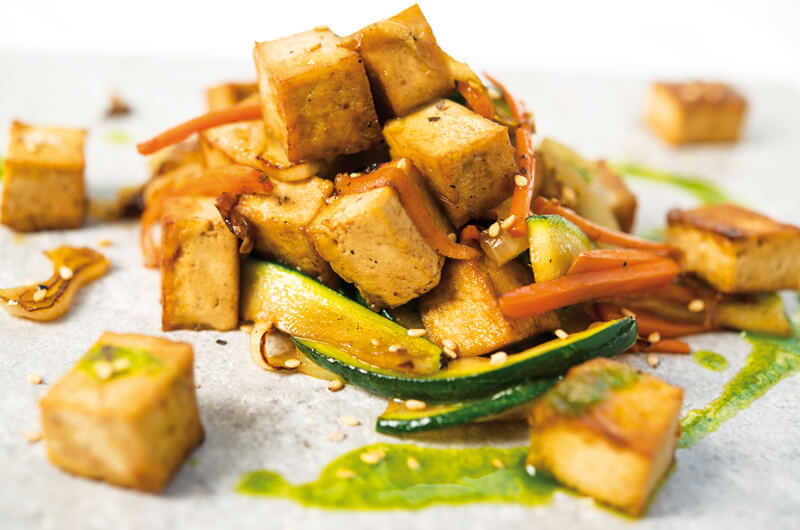 Crujiente de tofu con wook de verduras